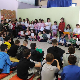 Τα παιδιά της Στ’ διάβασαν βιβλία στα παιδιά των Α’, Β’, Γ’ και Δ’ τάξεων και υλοποίησαν μαζί τους δημιουργικές δραστηριότητες με εφόρμηση τα βιβλία που διάβασαν. Προετοιμάστηκαν για μέρες, εξασκήθηκαν στην ανάγνωση, έθεσαν ερωτήματα και συνεργάστηκαν. Τα παιδιά του 19ου καλοδέχτηκαν τους επισκέπτες και τις επισκέπτριες με το τραγούδι που προετοίμασαν ειδικά για την ημέρα αυτή.